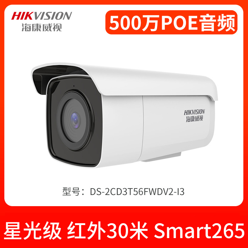 • 海康威視(HIKVISION)500萬星光級可錄音 監控器室外紅外槍機DS-2CD3T56FWDV2-I3