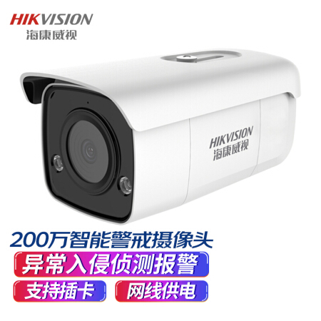 • 海康威視(HIKVISION)監控攝像頭 200萬星光級智能警戒攝像頭 POE紅外夜視音頻報警室外監控器 DS-2CD3T26FWDA3-I